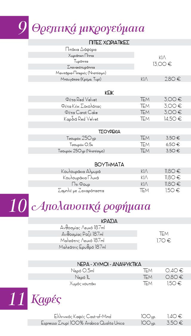 Με νέο ωράριο, 08:30 με 22:00. Στο τηλέφωνο 2310323247 παραγγείλετε ό,τι θέλετε και είτε ελάτε να τα πάρετε και να φύγετε γρήγορα, είτε ζητήστε μας να σας τα στείλουμε στο σπίτι σας.